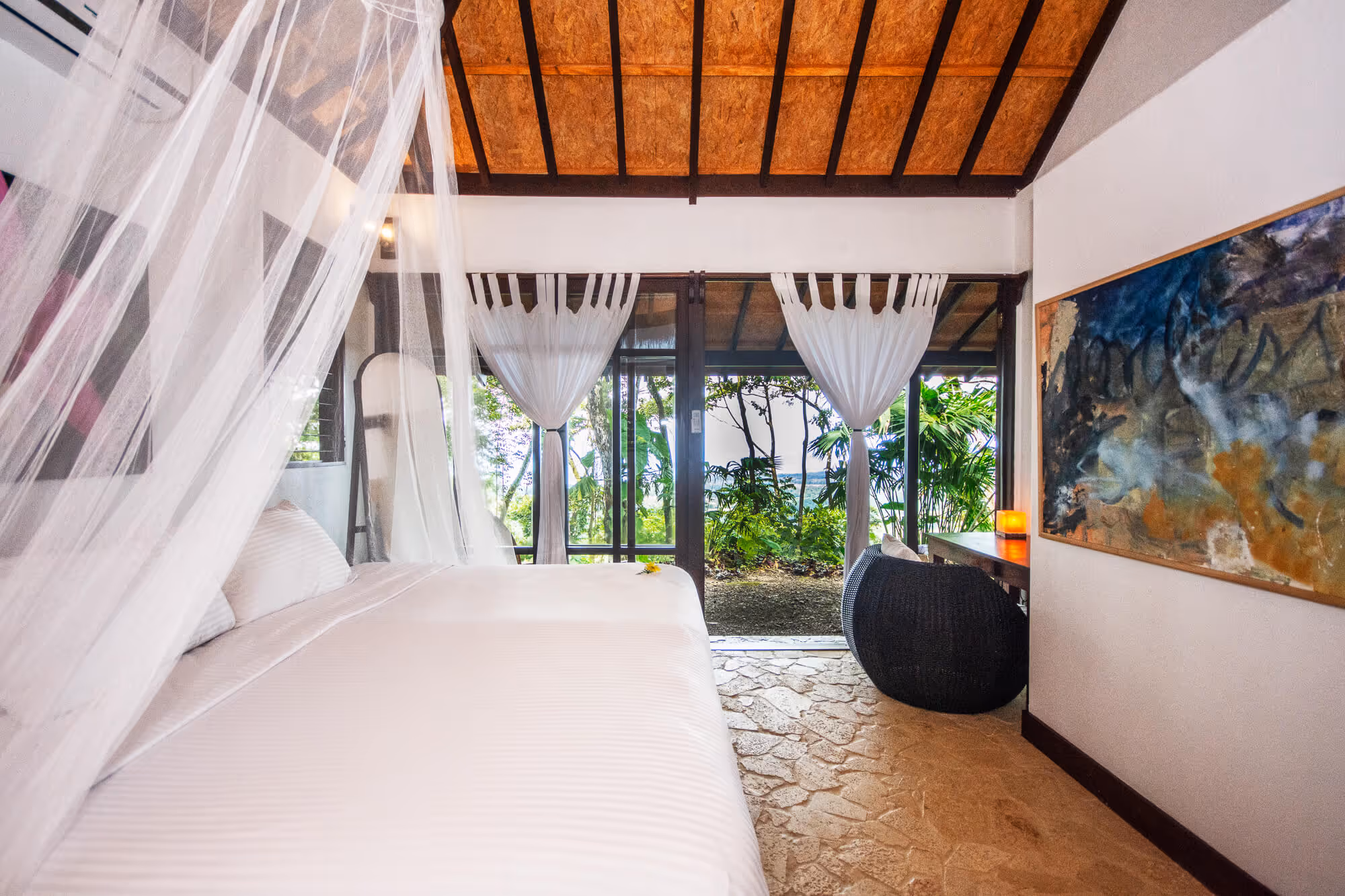 Our 2 Bali Suites are elegantly situated at the top of the mountain in the 200 year old Bali Village. The suites are located just a few steps away from our shared infinity pool, with gorgeous views overlooking the rainforest and the pacific ocean.