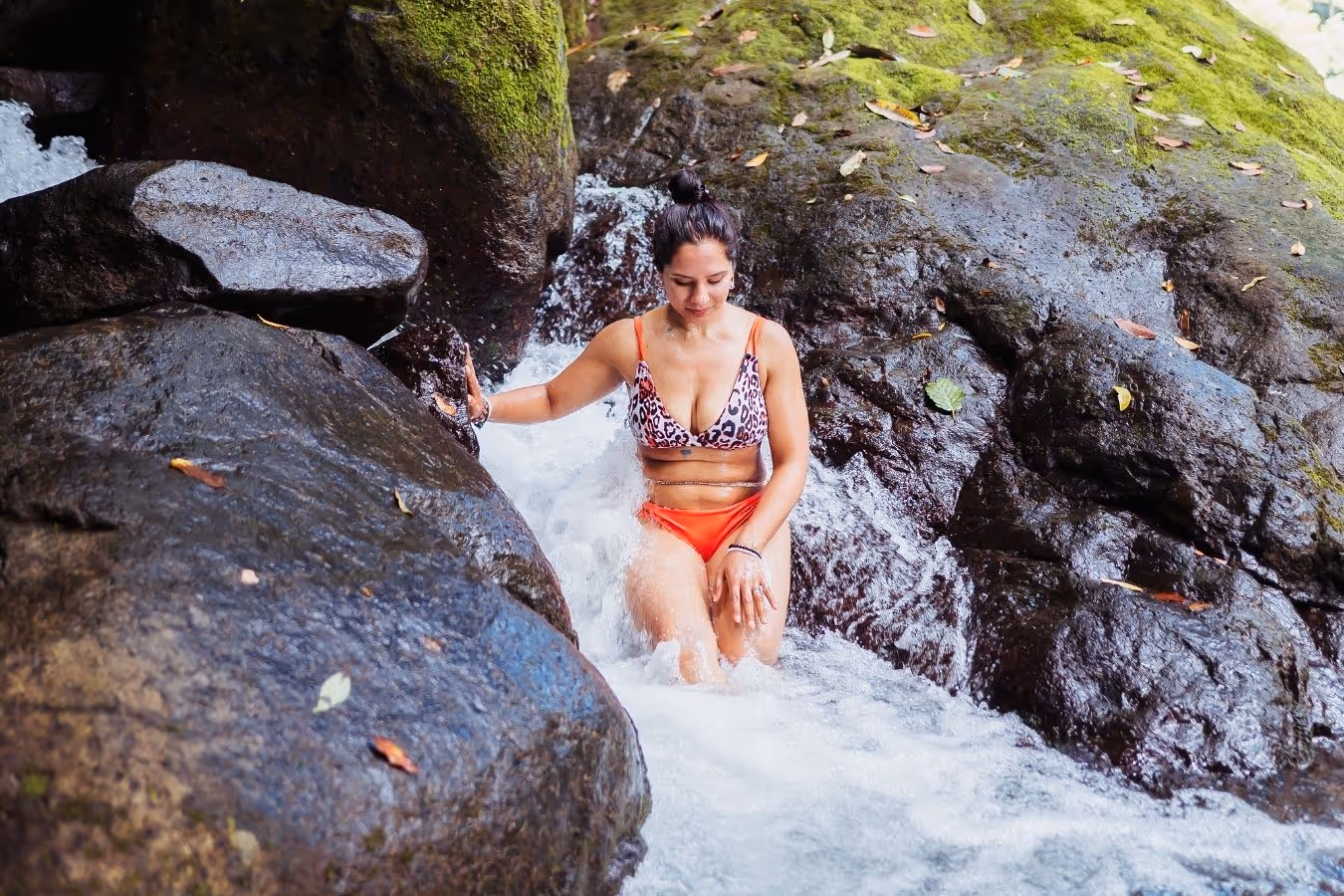Our 6 Jungle Bungalows are in close proximity to our common area, and right on the pathway to our own private waterfall. Bali inspired, the interiors feature natural finishings and beautiful details. Spacious bathrooms with a shower and soaking tub looking out to the rainforest.