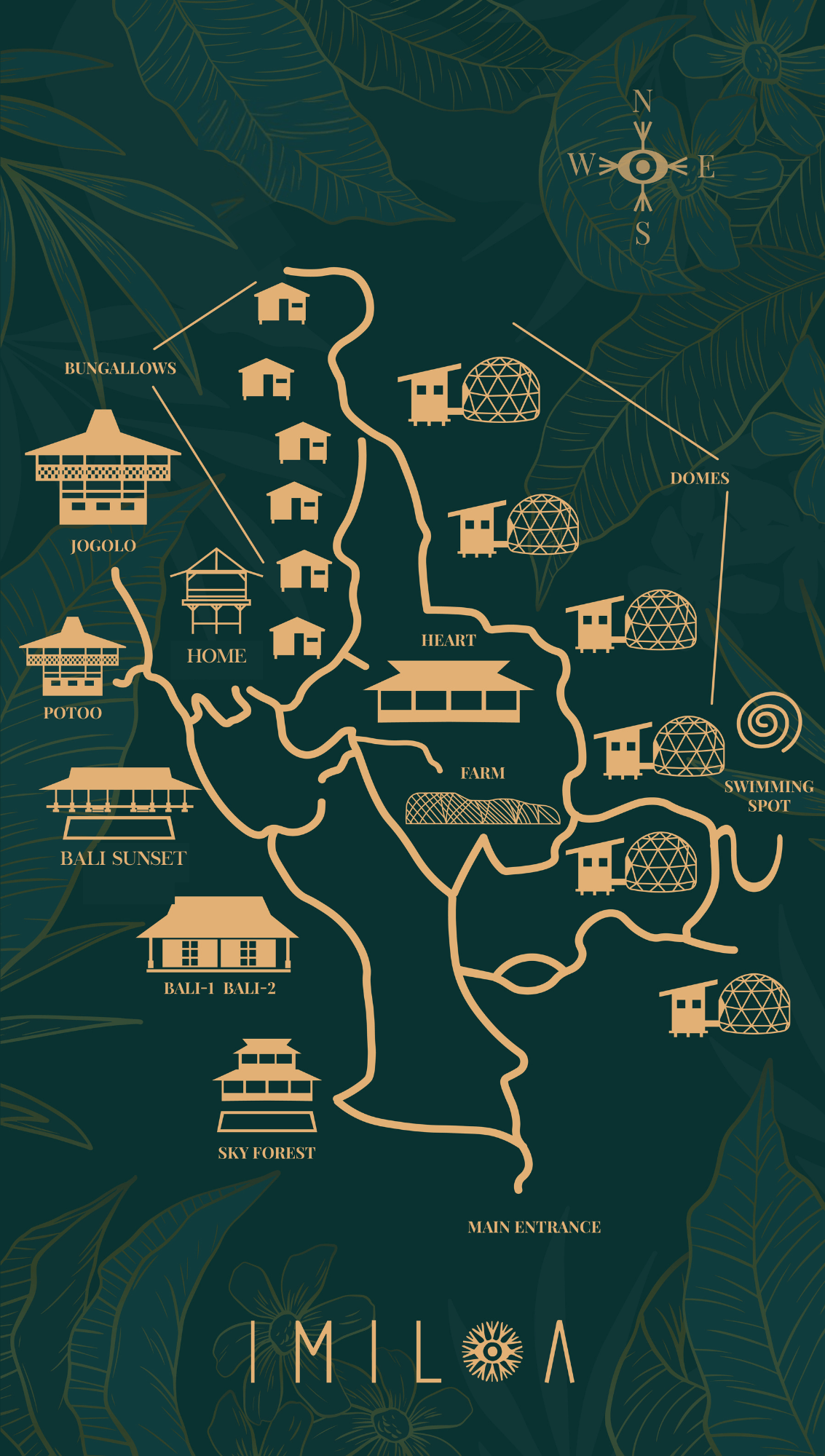 Miles of jungle pathways that lead to different gems on the property, including our private waterfall, named by the priests of the Indigenous Tribe (Kogis, from Colombia) “Morundwa.” The tribe visited Imiloa, as many tribes do, and activated our waterfall.